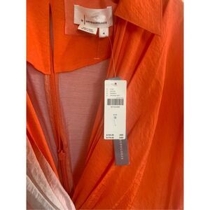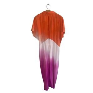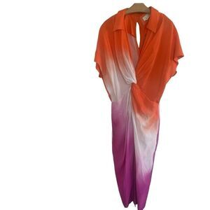 Anthropologie Orange Pink Ombre Short Sleeve Twist-Front Midi Shirt Dress Medium