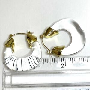 Anthropologie Organic Lucite Hoop Earrings Clear Acrylic Gold N06