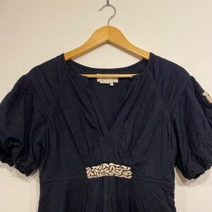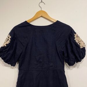 Intricately embroidered, this swingy mini dress is sure to be beloved. Cotton. Puffed sleeves with a v-neck. Short. The perfect boho cottage core mini dress. Lined so not see through at all! Size 2. In great condition.