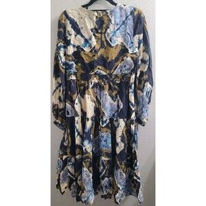 This stunning Anthropologie Othilia Arden Tie-Dye Midi Dress is perfect for any occasion. The dress boasts a vibrant tie-dye pattern, long puff sleeves, and a flattering V-neckline. The dress is made from a combination of cotton and viscose, and it is lined for added comfort. The dress is perfect for travel, weddings, holy communions, parties, and even workwear.