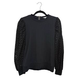 Anthropologie Othilia Imogen Women’s Small Black Eyelet Pullover Long Sleeve Top