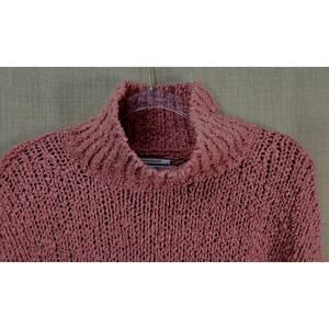 Anthropologie Oversized Mock Neck Sweater, a chic addition to any wardrobe. With its plush chunky-knit texture and delicate rose hue, this sweater is perfect for for a casual day out. The balloon sleeves and mock neckline add a touch of sophistication, while the relaxed fit ensures all-day ease. NWT. Extra yarn on tag for any snags. Women size small, very oversized. Pit 27" Length 32" Sleeve 23"