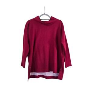 Anthropologie Oversized Slouchy Theresa Raspberry Red Cowl Neck Tunic Top Sz MP