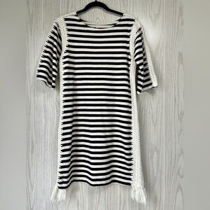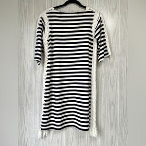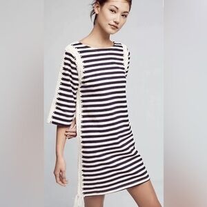 Anthropologie PEPIN Navy & Cream Cotton Dress Crochet Accents Beach Style NWOT Size XS