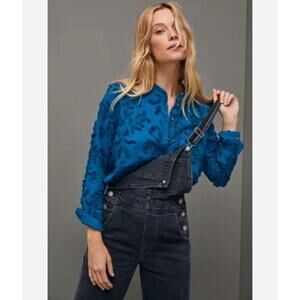 Anthropologie PILCRO Whitney Textured Trapeze Buttondown Top Peacock Blue Medium