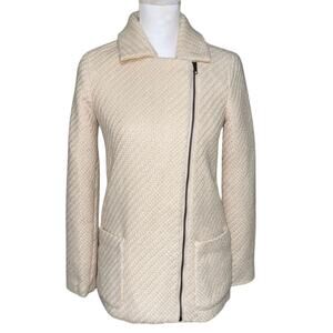 Anthropologie PIM + LARKIN Cream Wool Blend Jacket Coat XS Moto Old Money Woven