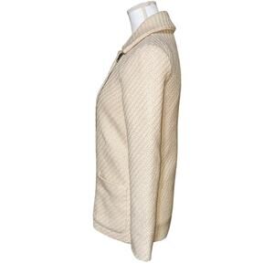 Anthropologie PIM + LARKIN Cream Wool Blend Jacket Sweater Coat Size Extra Small Woven Look Old Money Asymmetrical zip, Pockets