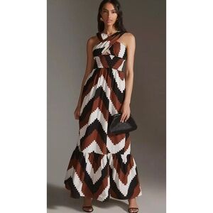 Anthropologie PLENTY by Trey Reese Halter Chevron Maxi Dress,SP