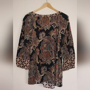 Anthropologie Paisley Blouse - Black and Brown Size 1X Plus Size Boho