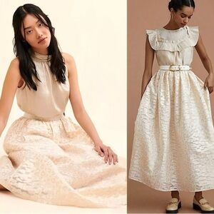 Anthropologie Pankaj & Nidhi Burnout gold cream Metallic Maxi full Skirt Small