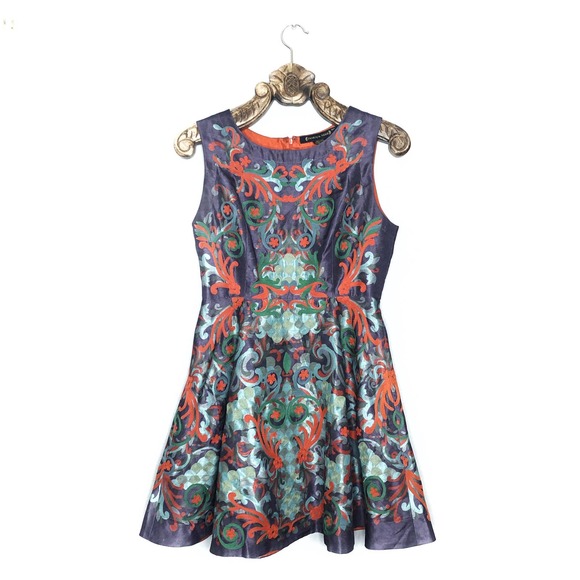 Anthropologie Pankaj & Nidhi Octave Embroidered Flare Purple Mini Dress 10Petite