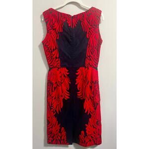Anthropologie Pankaj & Nidhi Spice Tree Embroidered Sheath Dress Navy Red sz. 4