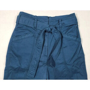 Anthropologie Pants Women's Size 4 Blue Belted Snap Ankle Pockets Tapered Leg