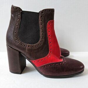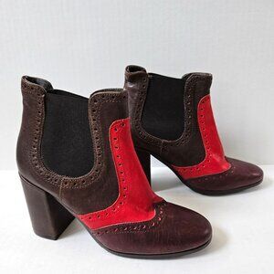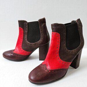 Anthropologie Paola Ferri Boots Womens 36 City Stomper Brown Red Leather Booties