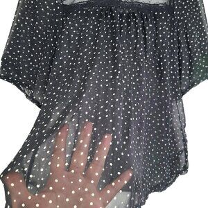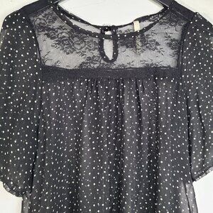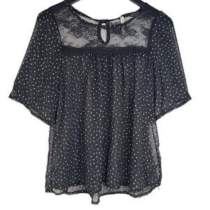 Anthropologie Paper Crane Mod Wife Black Polka Dot Flutter Sleeve Blouse