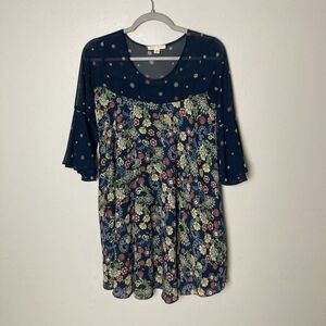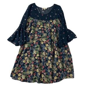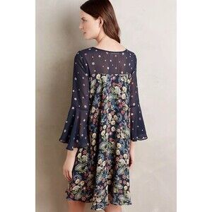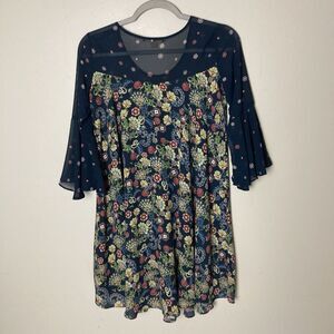 Anthropologie Paper Crown Navy Floral Swing Tunic Dress XXSP