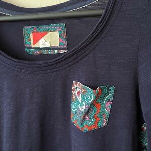 Paper Locket Anthropologie Navy Blue Paisley Roll Tab Sleeve Accordion Tee
