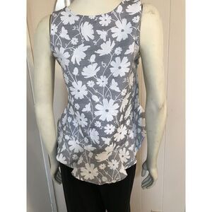 Anthropologie Paper Crown Peplum Tank Neutral Graphic Striped Floral V-Neck Sm