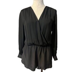 This romper is from Parker in a misses size medium. Jet black in color. Lined in polyester. Outer fabric is pure silk.