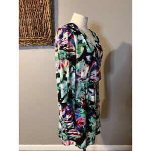 This pretty dress is from Parker in a misses size small. Made of polyester. Pullover style with stretchy elastic waist. Smocked section at the shoulders. Snap at the bust. Open back with button at the back of the neck.
