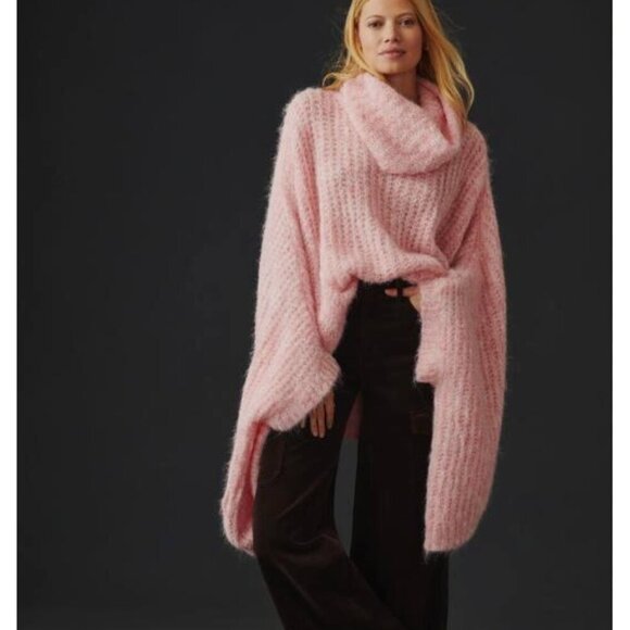 Anthropologie Pastel Pink Oversized Turtleneck Poncho Sweater OS