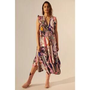 Anthropologie Patchwork Print Ruffle Shoulder Swing Dress Size 12 Petite,