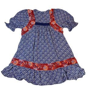 Anthropologie Patron's of Peace Floral Dress Women Sz Medium Blue Boho Prairie
