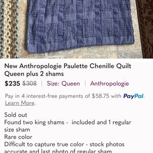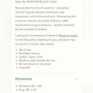Anthropologie Paulette Chenille Pair of King Shams NWT defect