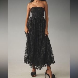 Anthropologie Payal Jain Strapless 3D Floral Beaded Lace Maxi Dress in Black