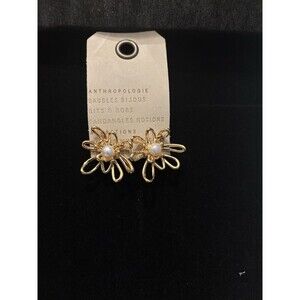 Anthropologie Pearl Floral Post 14k gold-plated brass, freshwater pearl Earring