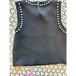 Anthropologie Pearl-Trim Black Sweater Tank Top M Cropped Sleeveless Knit Shell