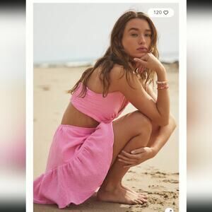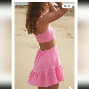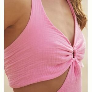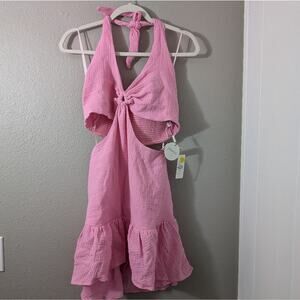 Stylish pink sundress with cutout design. Perfect for beach outings.