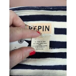 #anthropologie #pepin #nwt #nautical #stripe #cotton #dress #large #crochet #navy