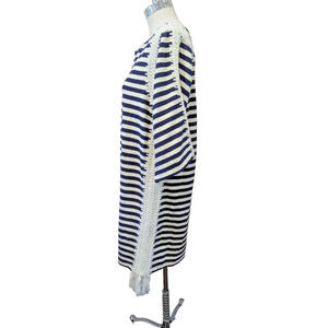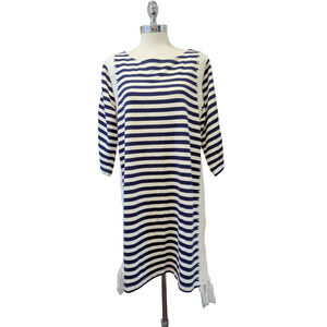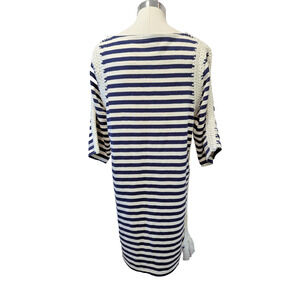 Anthropologie Pepin Nautical Stripe Cotton Tunic Dress Size L Crochet Trim Navy