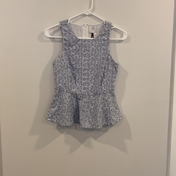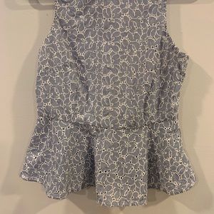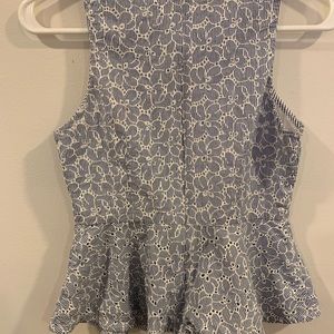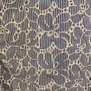 Adorable peplum top from Anthropologie. Worn once. Blue pinstripe with lace