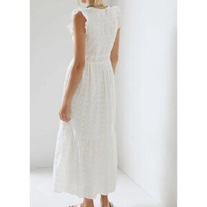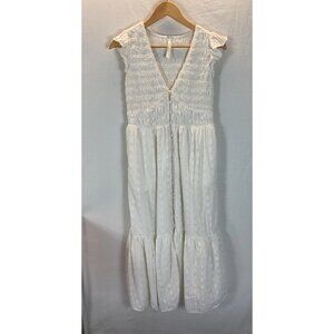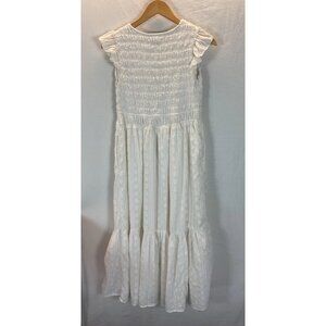 Anthropologie Peregrine MIDI Dress White Size S smocked flutter sleeve