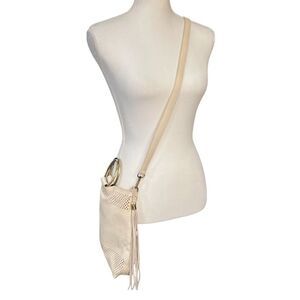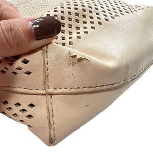 Anthropologie Perforated Leather Crossbody Bag With Gold Ring Handle Cream