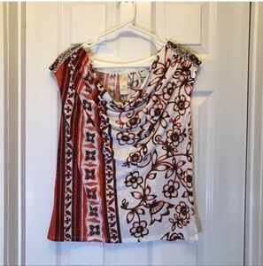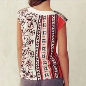 Anthropologie Pergola Cowlneck Top Floral Beaded