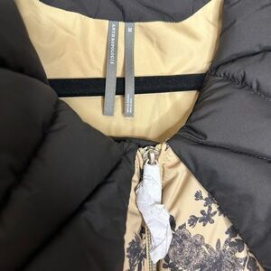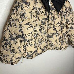 Anthropologie Peter Pan Collar Floral Puffer Jacket in cream with black botanical print NWT. Romantic cropped puffer with contrast hood - sold out cottagecore style from Anthropologie.