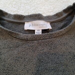 Philosophy from Anthropologie Moss Olive Green Inside Out Soft Oversized Short Sleeve Pocket Sweater