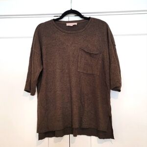 Anthropologie Philosophy Inside Out Oversized 1/2 Sleeve Pocket Moss Sweater