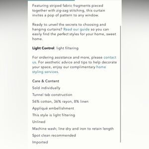 Anthropologie Pieced Stripe Cotton Blend Woven Curtain NWT