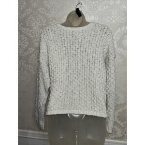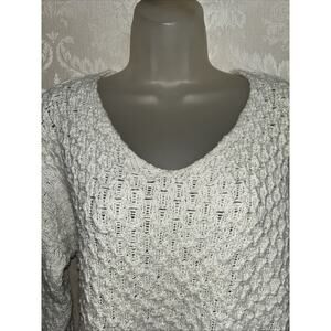 Anthropologie by Pilcro solid off-white woven textured 100% cotton long sleeve pullover sweater. Features low and wide V neckline and slightly dropped shoulder seams. Long straight cut sleeves with ribbed cuffs at ends. Cut wide and straight through body length, falling to top of hip. Ribbed trim at bottom hem. Slightly heavier weight knit fabric. Stretch available. Women’s size extra small with a relaxed fit