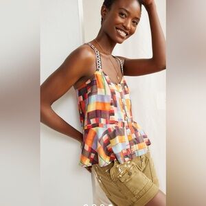 Anthropologie Pilcro Abstract Peplum Tank Button Down Blouse Size MP