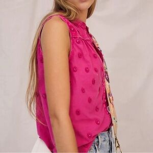 Anthropologie Pilcro Adira Beaded Button Down Hot Pink Top