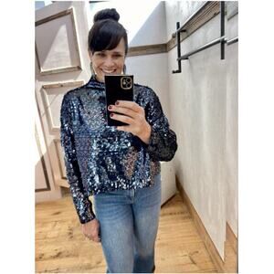 Color: Navy (depending on the light the sequins can look navy or a deep teal)