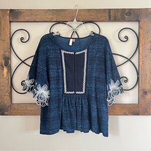 This Pilcro by Anthropologie is the perfect blouse for spring/summer/fall with embroidered details, peplum bottom, and cottagecore design. Pair with jeans for casual look or slacks and skirts to elevate your style.