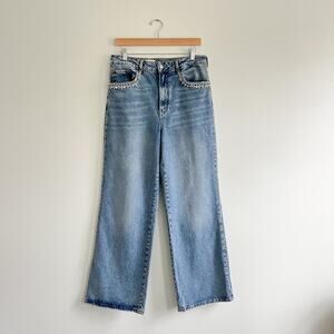 Anthropologie Pilcro The Austyn High Rise Wide Leg Rhinestone Embellished Denim Jeans, Size 30
