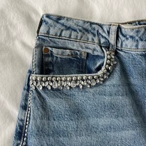 Anthropologie Pilcro Austyn High Rise Wide Leg Rhinestone Embellished Denim Jean