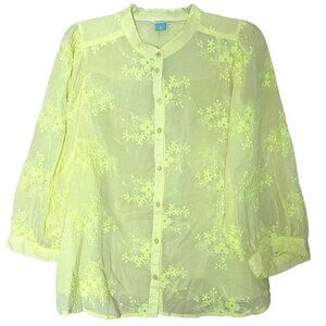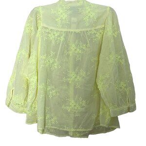 Anthropologie Pilcro Bella Femme Shirt Blouse 2X Yellow Embroidered Floral NWT